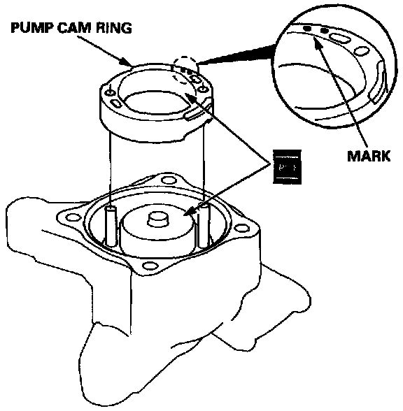 8. Remove the pump cam ring, pump rotor, pump vanes, side plate and preload spring.