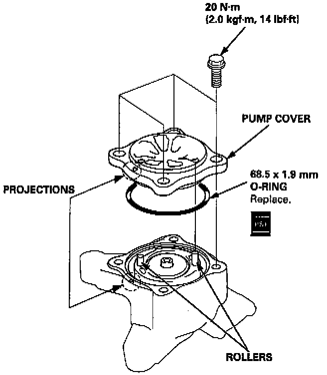 16. Align the projection on the pump housing and the projection on the pump cover, and tighten the four bolts.