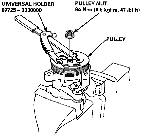 27. Hold the pulley with the special tool, and tighten the pulley nut.