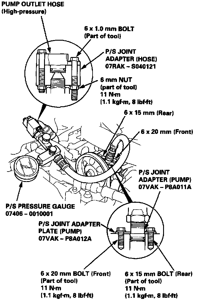 3. Install the P/S pressure gauge to the P/S joint adapter (pump).