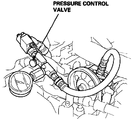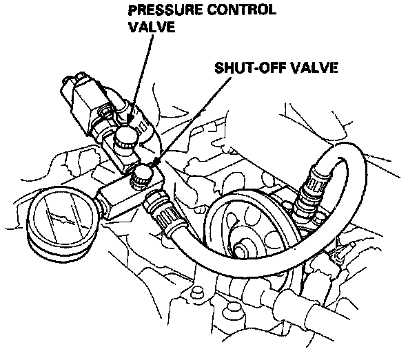7. Measure steady-state fluid pressure while the engine is idling. If the pump is in good condition, the gauge should read 1,500 kPa (15 kgf/cm2, 213 psi). If it reads high, check the outlet hose or valve body unit see General Troubleshooting.