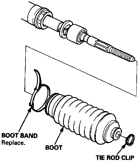 4. Remove the boot bands and tie rod clips. Pull the boots away from the ends of the gearbox.