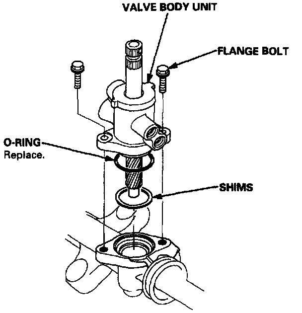 - When the valve housing is replaced, install new 32 mm shim(s) on the bearing surface of the housing to adjust the thickness.