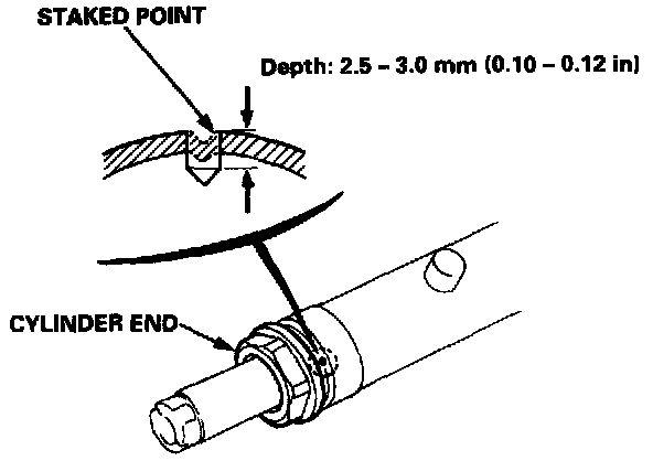 12. Drill a 3 mm (0.12 inch) diameter hole approximately 2.5 - 3.0 mm (0.10 - 0.12 inch) in depth in the staked-point on the cylinder.