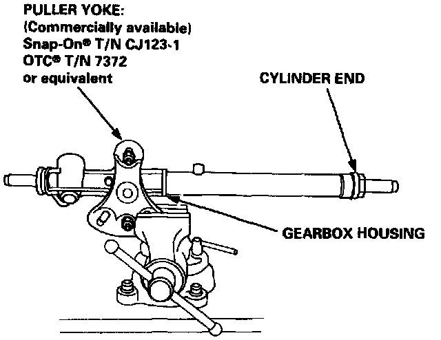 13. Install a puller yoke to the gearbox housing. Clamp the puller yoke in a vise with son jaws as shown, then loosen and remove the cylinder end.