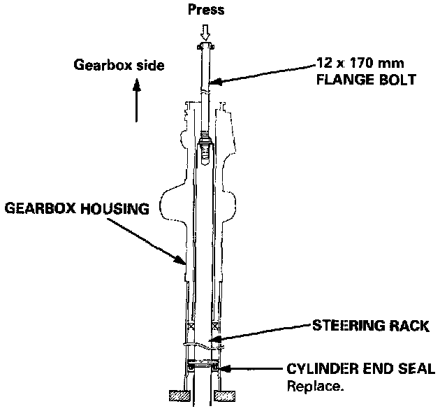 17. Press the cylinder end seal and steering rack out of the gearbox housing.