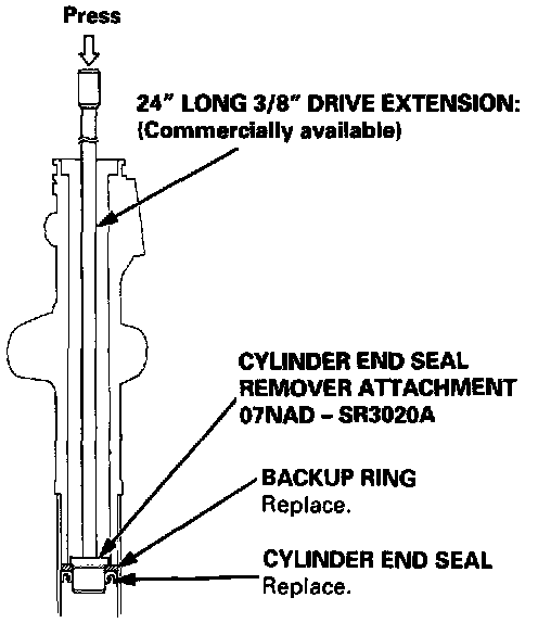 - Use a press to remove the cylinder end seal. Do not try to remove the seal by striking the tool. It will break the backup ring, and the cylinder end seal will remain in the gearbox.