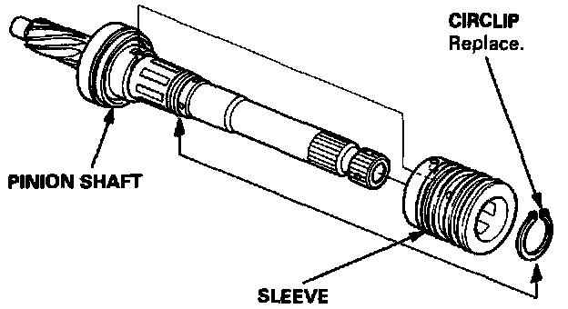 - The pinion shaft and sleeve are a precise fit; do not intermix old and new pinion shafts and sleeves.