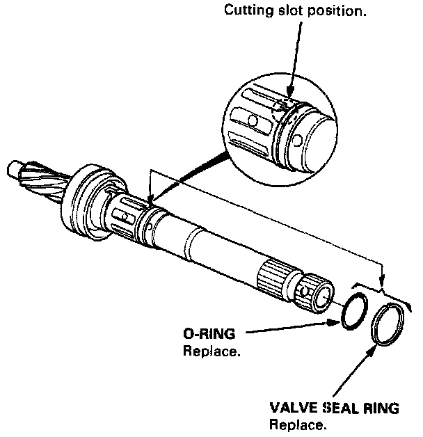 29. Using a cutter or an equivalent tool, cut the valve seal ring and O-ring at the groove the pinion shaft. Remove the valve seal ring and O-ring.