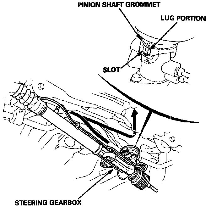 NOTE: Align the slot in the pinion shaft grommet with the lug portion on the valve housing.