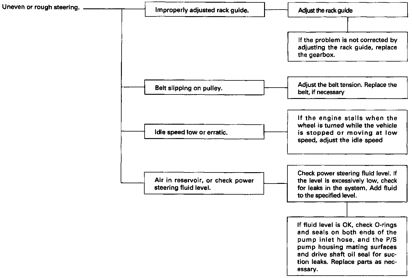 - Is steering fluid reservoir filled to proper level?