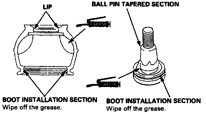 - Keep grease off the boot installation section and the tapered section of the ball pin.