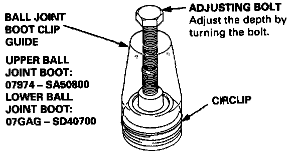 5. Install the upper and lower ball joint boot set rings using the special tools as follows: