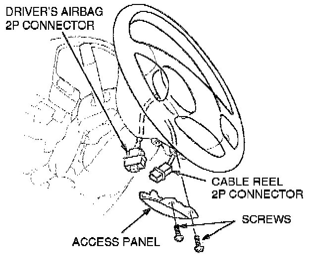 4 Unplug the cable reel 2P connector from the driver's airbag 2P connector.