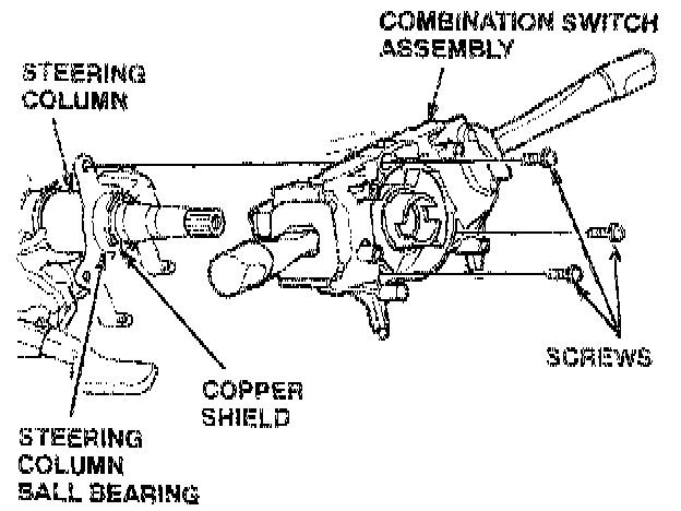 13. Remove the combination switch assembly from the steering column (three screws) to expose the copper shield on the steering column ball bearing.