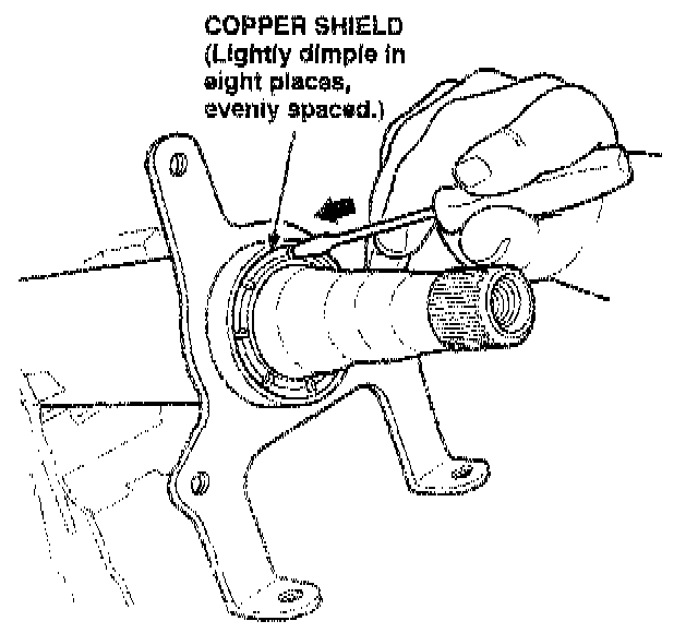 14. Use a small, flat-tip screwdriver to lightly dimple the shield in eight places as shown.