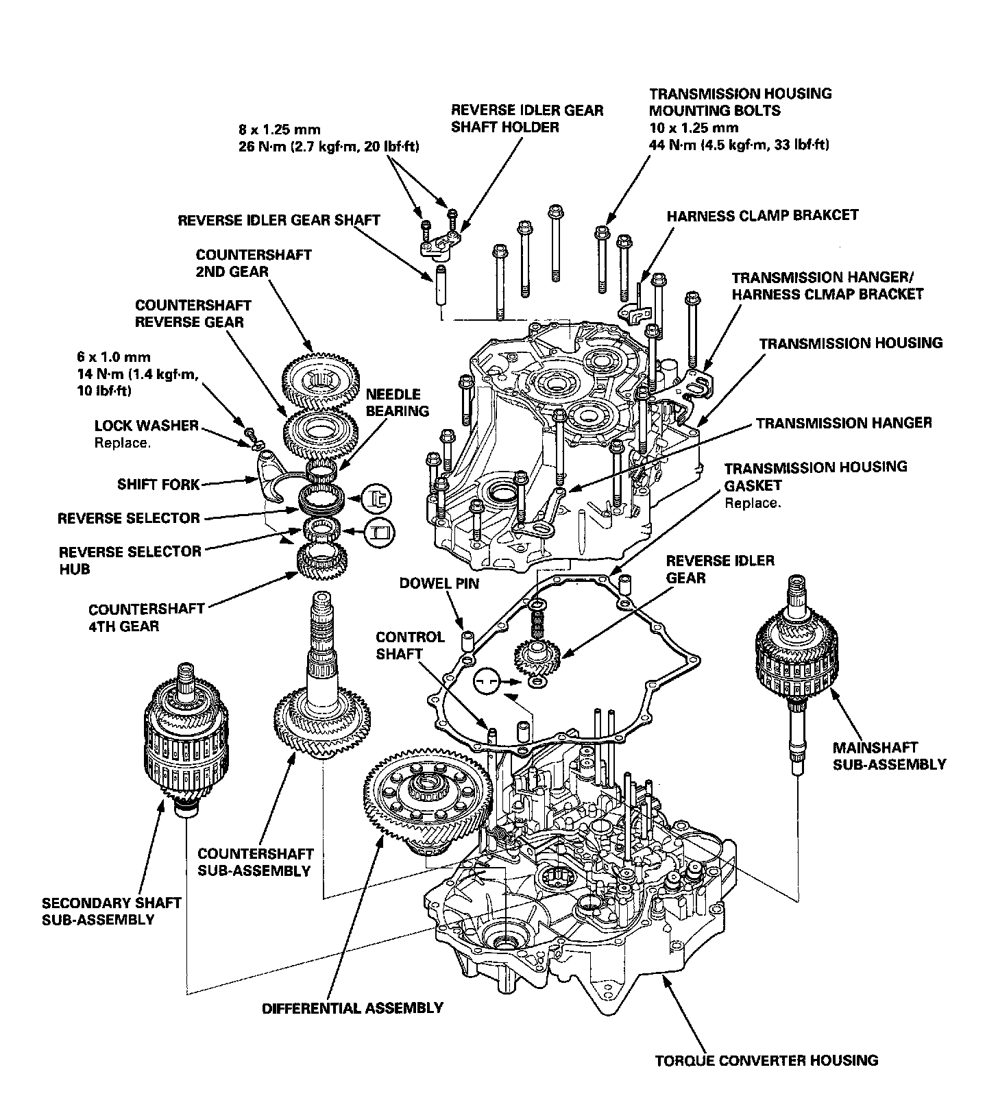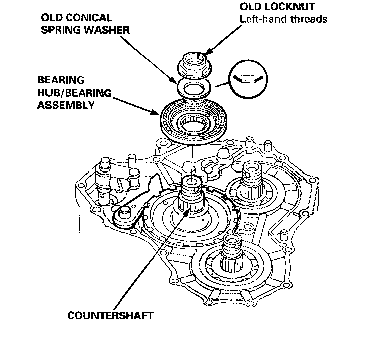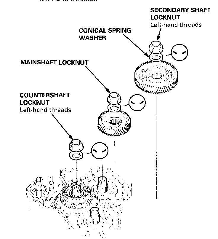 - Countershaft and secondary shaft locknuts have left-hand threads.