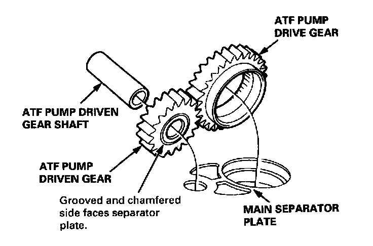 NOTE: Install the ATF pump driven gear with its grooved and chamfered side facing down.
