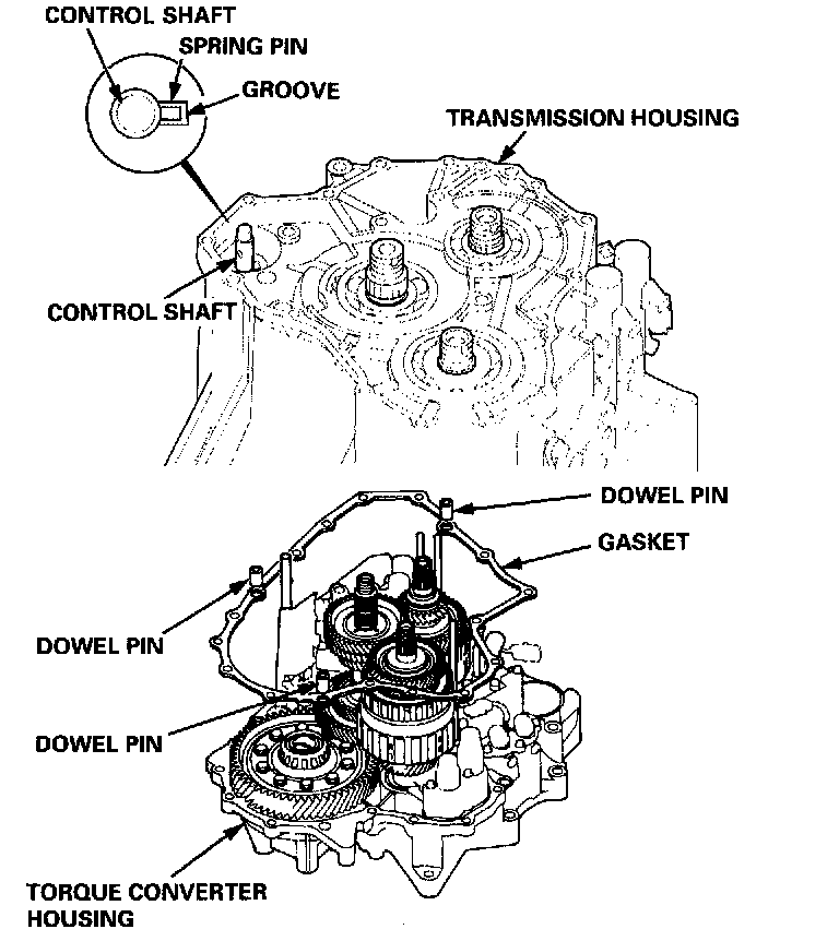 22. Align the spring pin of the control shaft with the transmission housing groove by turning the control shaft.