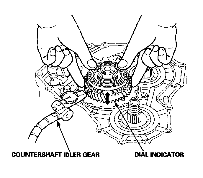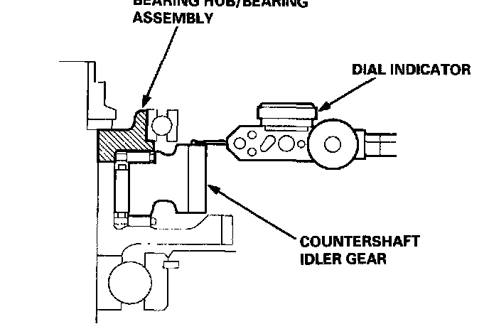 33. Set the dial indicator to the countershaft idler gear as shown.