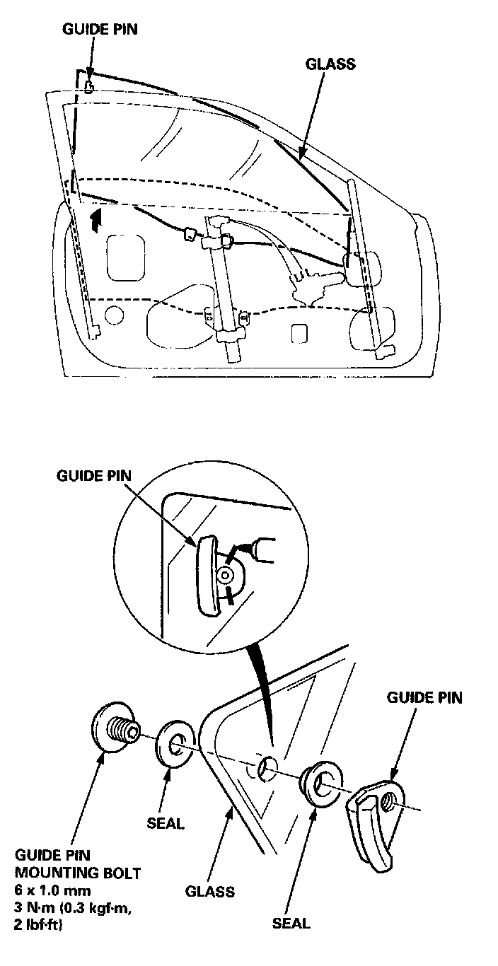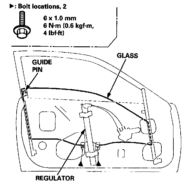 ^ Roll the glass up and down to see if it moves freely without binding. Also make sure that there is no clearance between the glass and glass run channel when the glass is closed. Adjust the position of the glass as necessary.