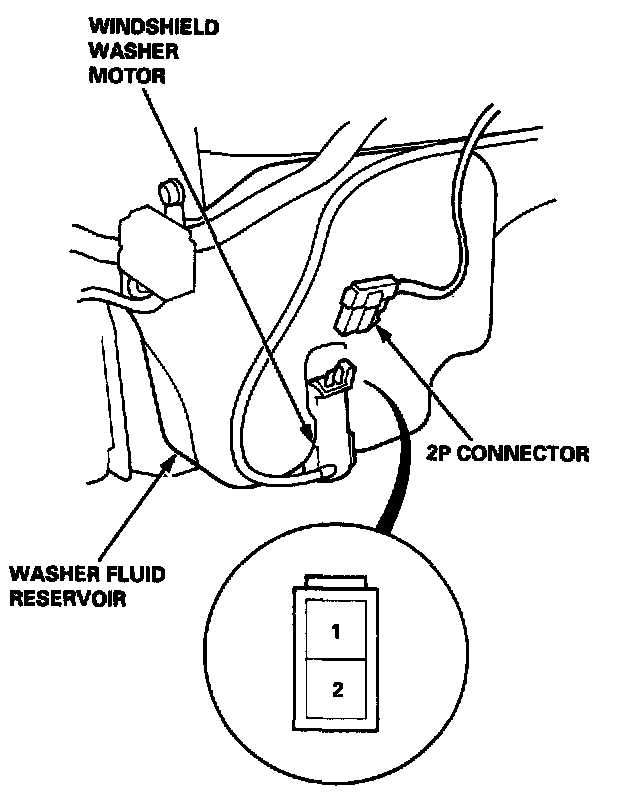 1. Remove the front bumper.2. Disconnect the 2P connector from the washer.