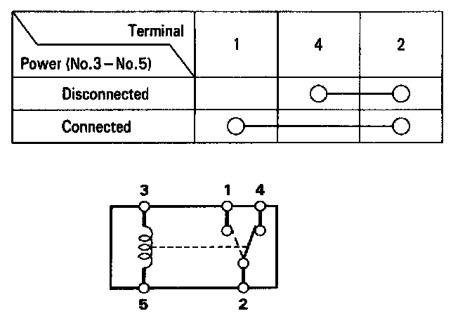 ^ There should be continuity between the No. 1 and No. 2 terminals when power and ground are connected to the No. 3 and No. 5 terminals.