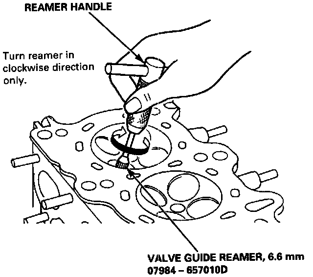 2. Rotate the reamer clockwise the full length of the valve guide bore.