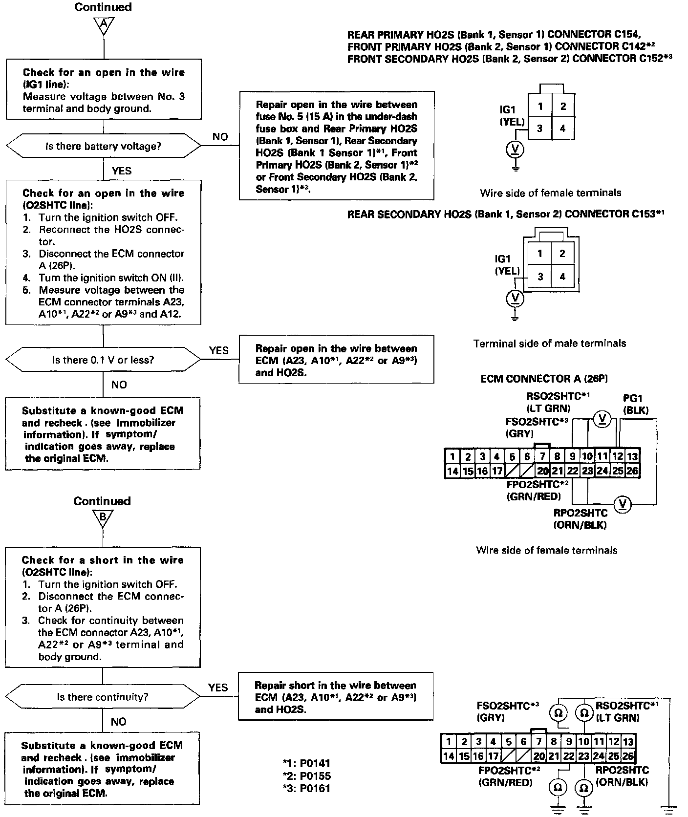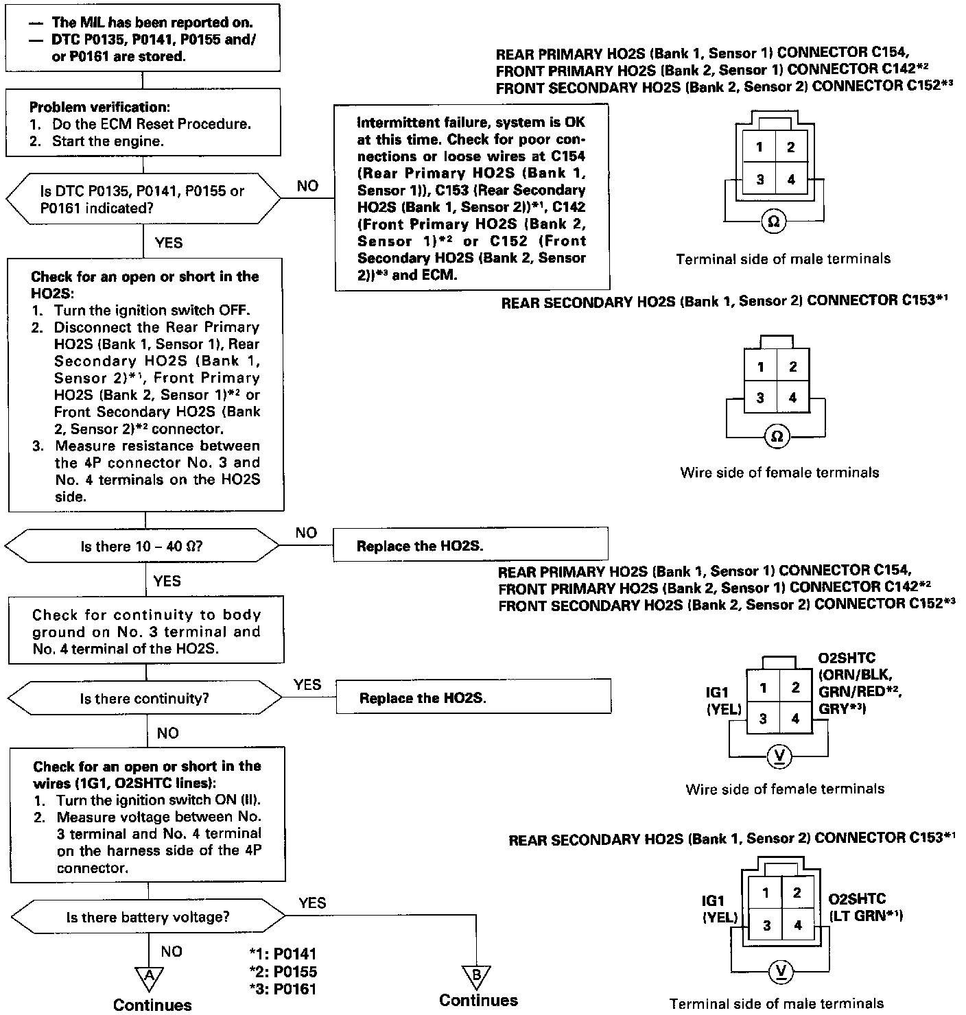 The scan tool indicates Diagnostic Trouble Code (DTC) P0141: A problem in the Rear Secondary Heated Oxygen Sensor (HO2S) (Bank 1, Sensor 2) Heater circuit.