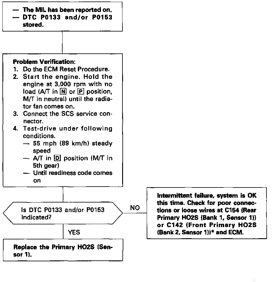 NOTE: If DTC P0131, P0132 and/or P0135 are stored at the same time as DTC P0133, troubleshoot those DTCs first, then troubleshoot DTC P0133. If DTC P0151, P0152 and/or P0155 are stored at the same time as DTC P0153, troubleshoot those DTCs first, then troubleshoot DTC P0153.