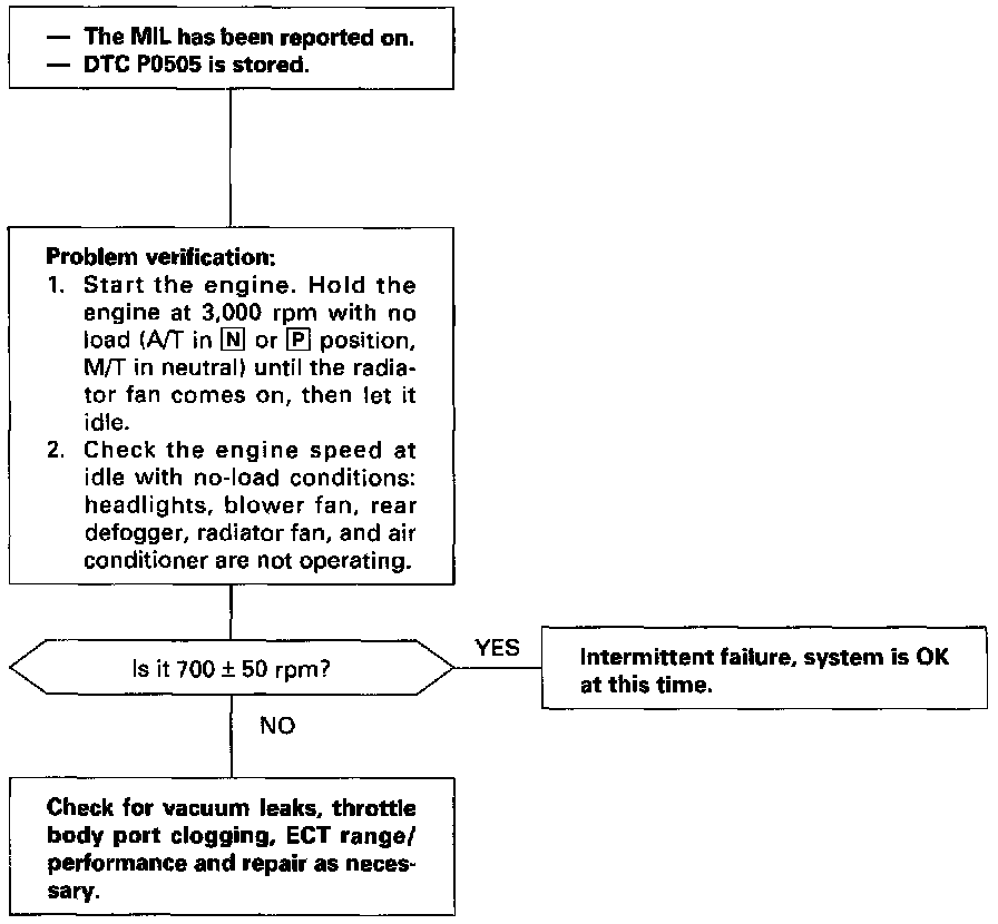 NOTE: If DTC P1508 is stored at the same time as DTC P0505, troubleshoot DTC P1508 first, then troubleshoot DTC P0505.