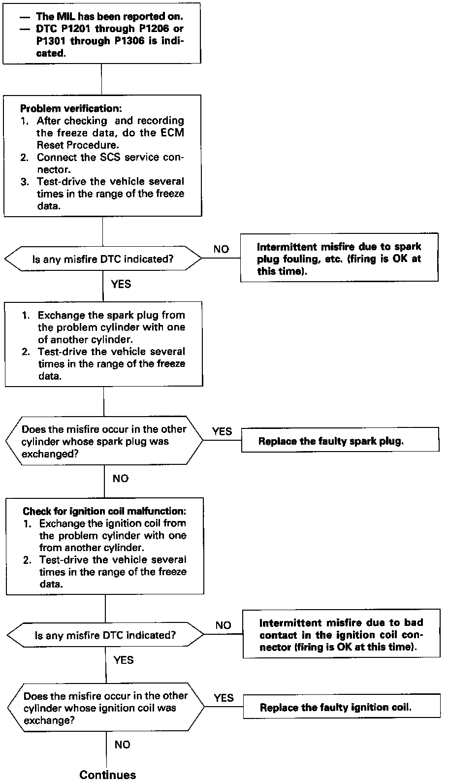 NOTE: If some of the DTCs listed below are stored at the same time as a misfire DTC, troubleshoot those DTCs first, then troubleshoot the misfire DTC.