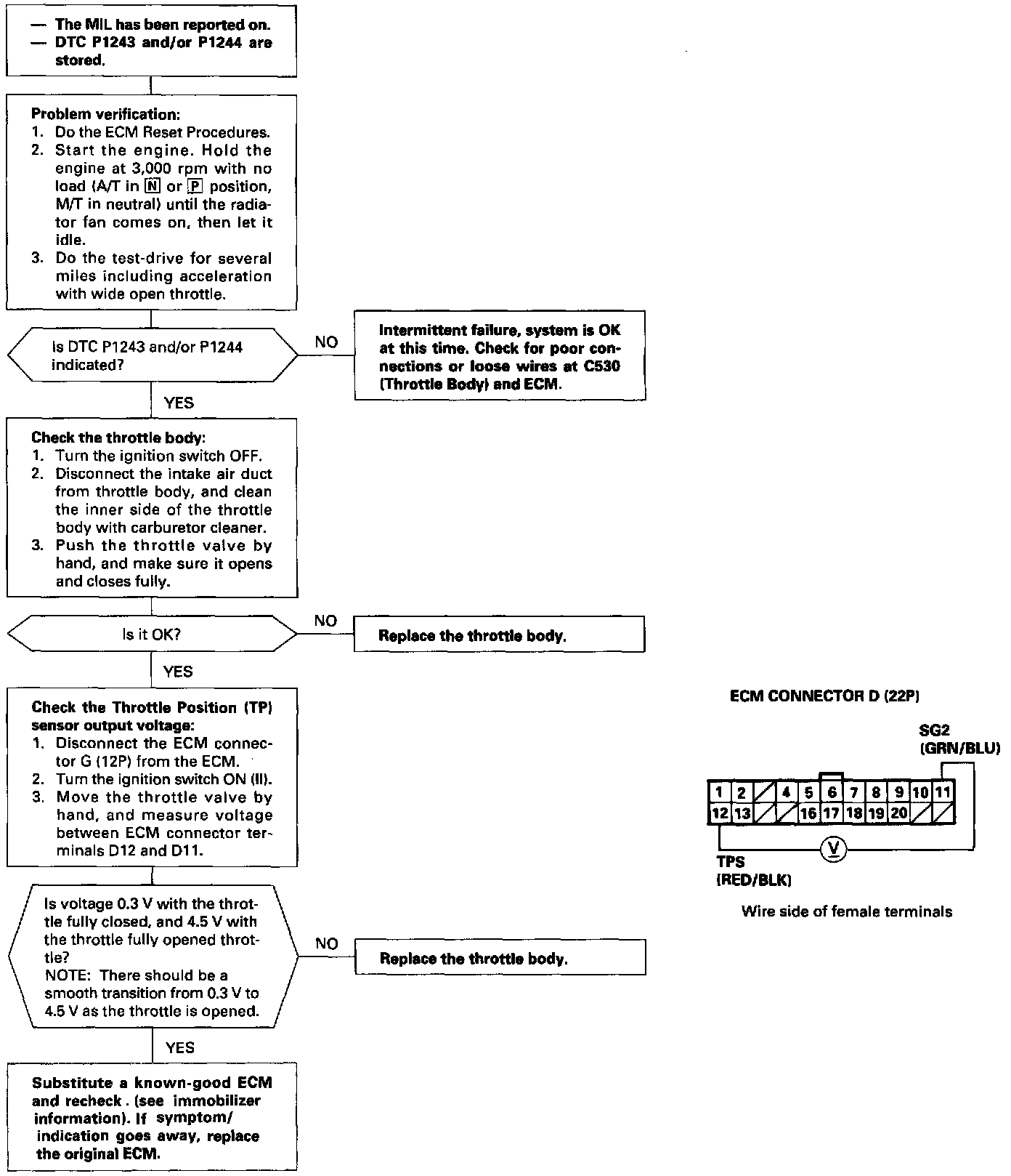 The scan tool indicates Diagnostic Trouble Code (DTC) P1244: An insufficient closed throttle position.