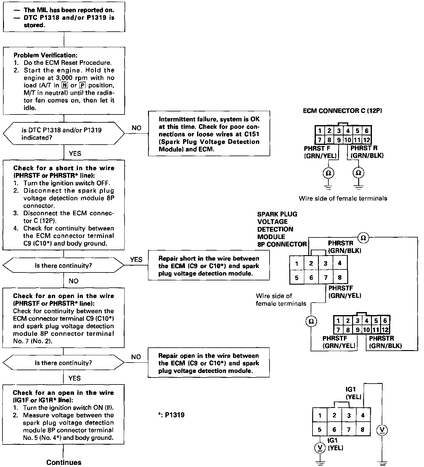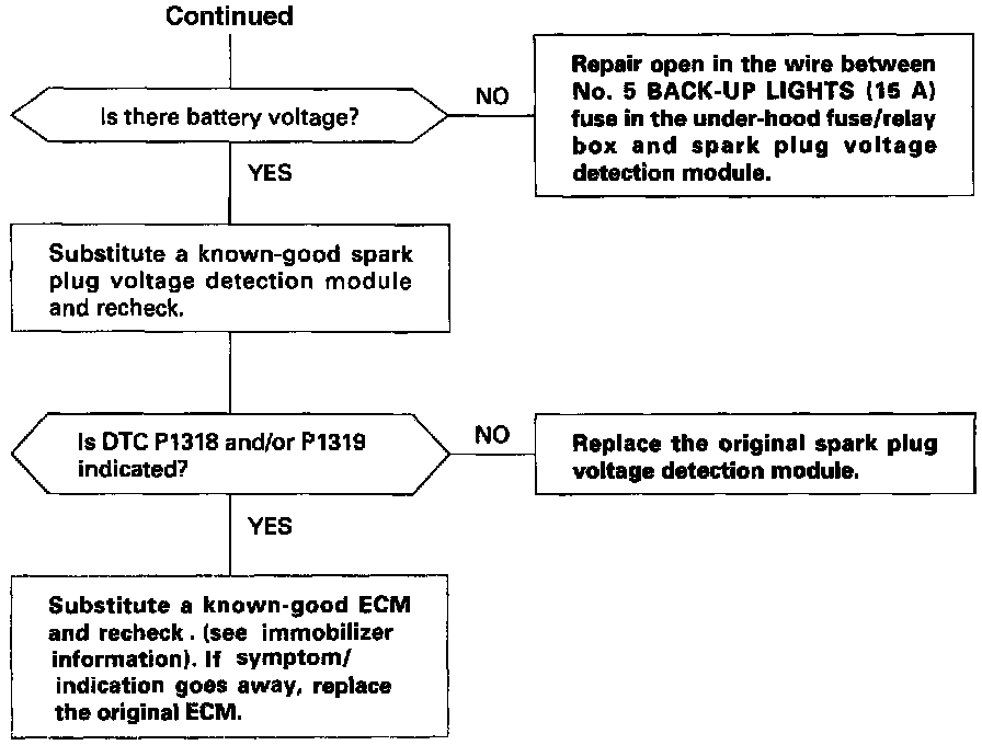 The scan tool indicates Diagnostic Trouble Code (DTC) P1318: Spark Plug Voltage Detection Module Reset circuit malfunction [Front bank (Bank 2)]