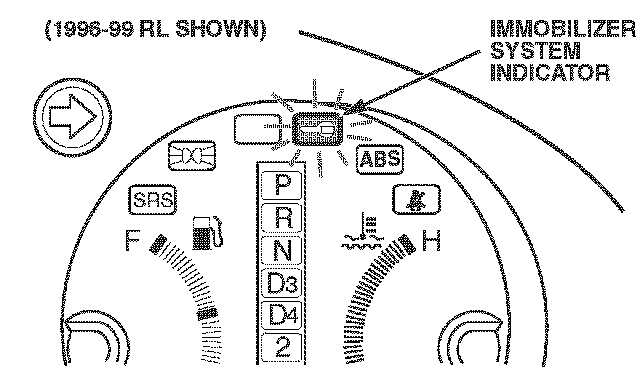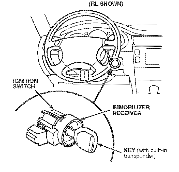 *All 1996-2004 3.5RLs and 1997-2005 NSXs have a Type 1 immobilizer system that disables the vehicle unless a programmed ignition key is used. A programmed ignition key is a transponder-type key that has been cut to fit the ignition switch and whose transponder ID code is recognized by the immobilizer system. If you try to start the engine without a programmed ignition key, the engine will not crank.*