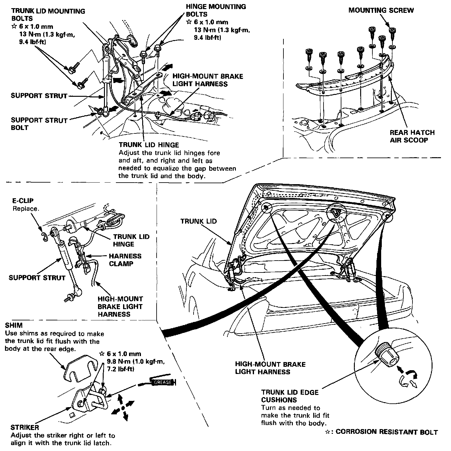 3. Remove the trunk lid by removing the trunk lid mounting bolts.