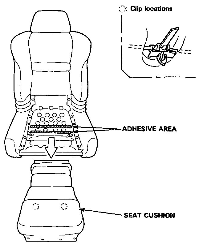 - Before installing the seat cushion, scrape the old adhesive smoothly from the seat cushion frame. Clean the bonding surface with a sponge dampened in alcohol.