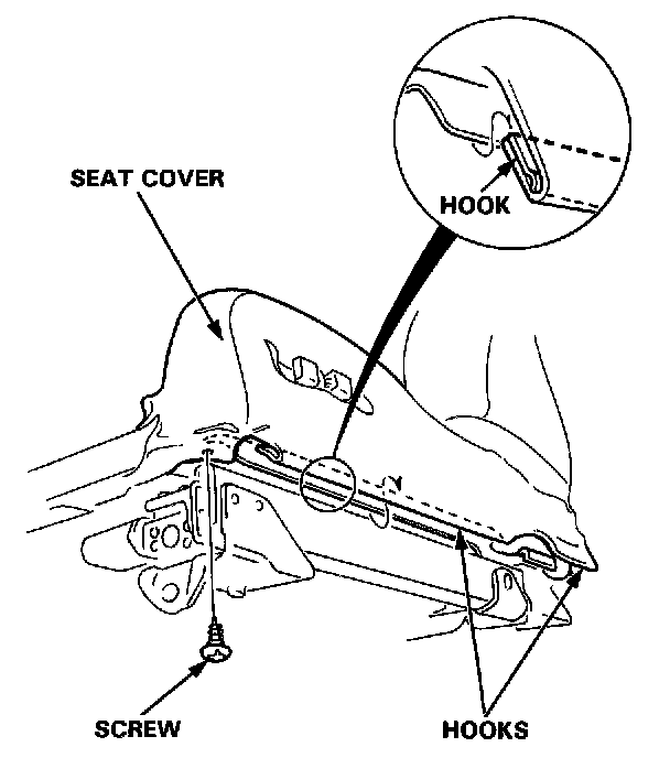 1. Detach the clips and hooks from under the seat. Pull the seat cover back.