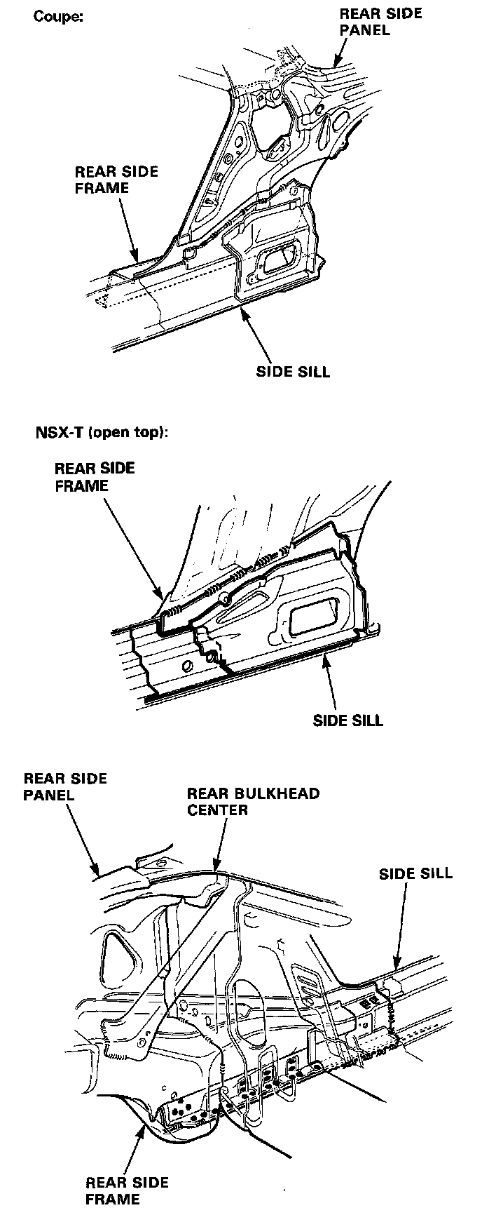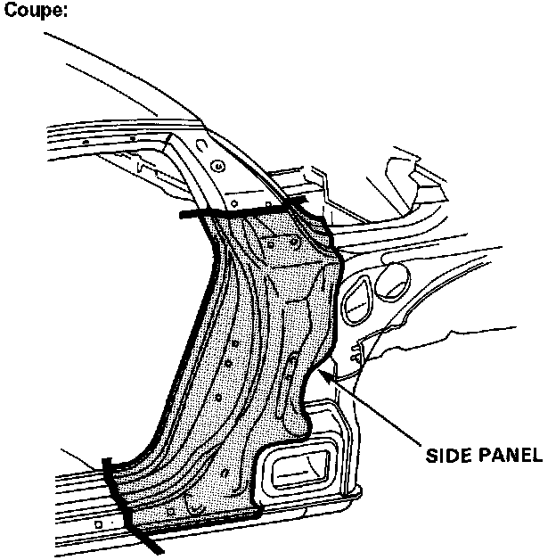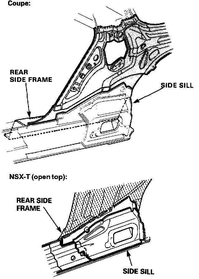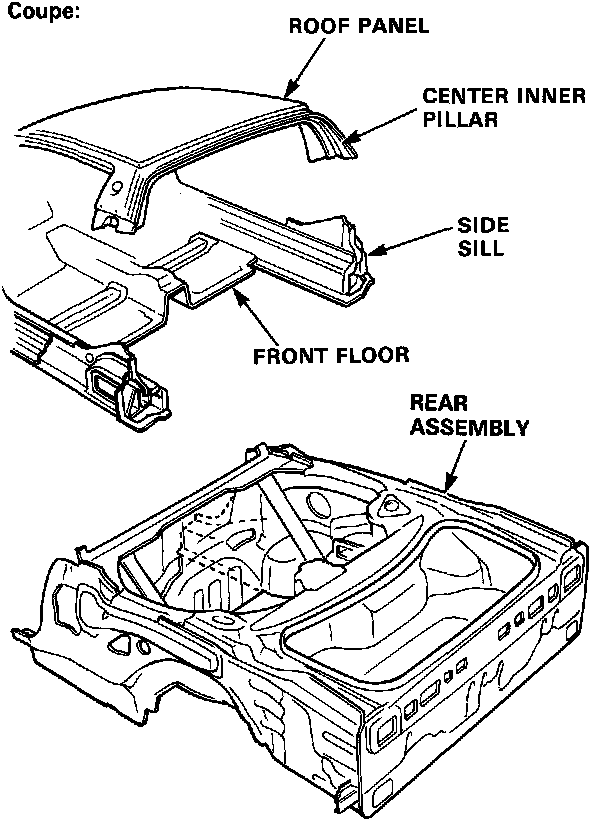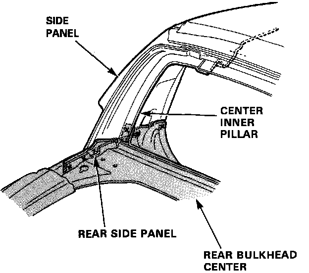 6. Remove the center inner pillar and rear bulkhead center on each side (coupe only).