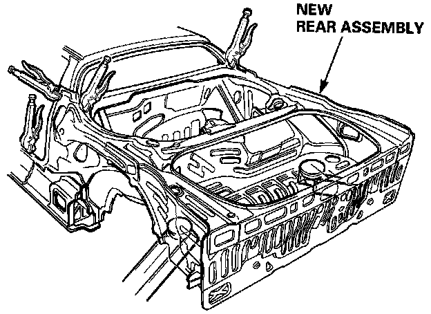 NOTE: The frame number of the car is stamped on the trunk front panel and is registered with local authorities. If the rear assembly must be replaced because of damage, check with local authorities before replacement.