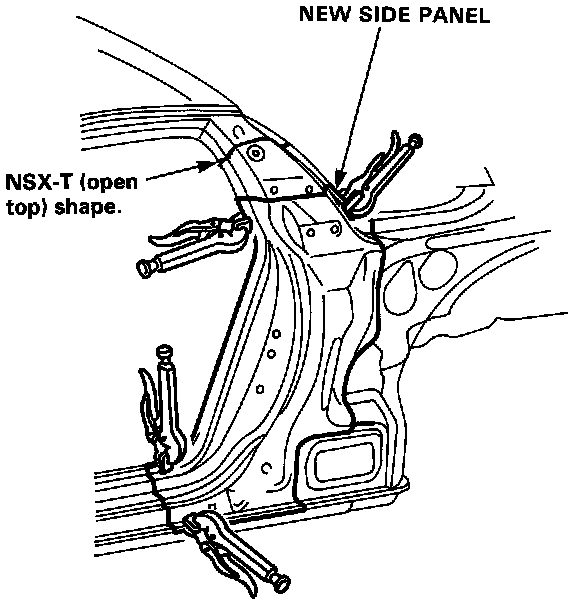 - Tighten the rear assembly against the side sill and center inner pillar flange using the vise-grips, pliers etc.