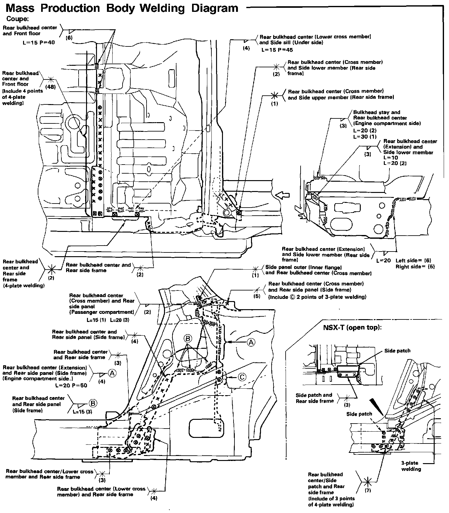 DescriptionThe rear bulkhead center is the critical part which connects the right and left body center and where the fuel tank is mounted. Take extreme care to position the rear bulkhead center properly. Weld securely following the welder manufacturer's instructions to maintain the rigidity.