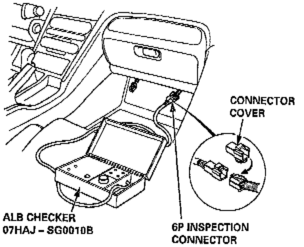1. Disconnect the 6P inspection connector (PNK) from the connector cover located under the glove box, and connect the 6P inspection connector to the ALB checker.