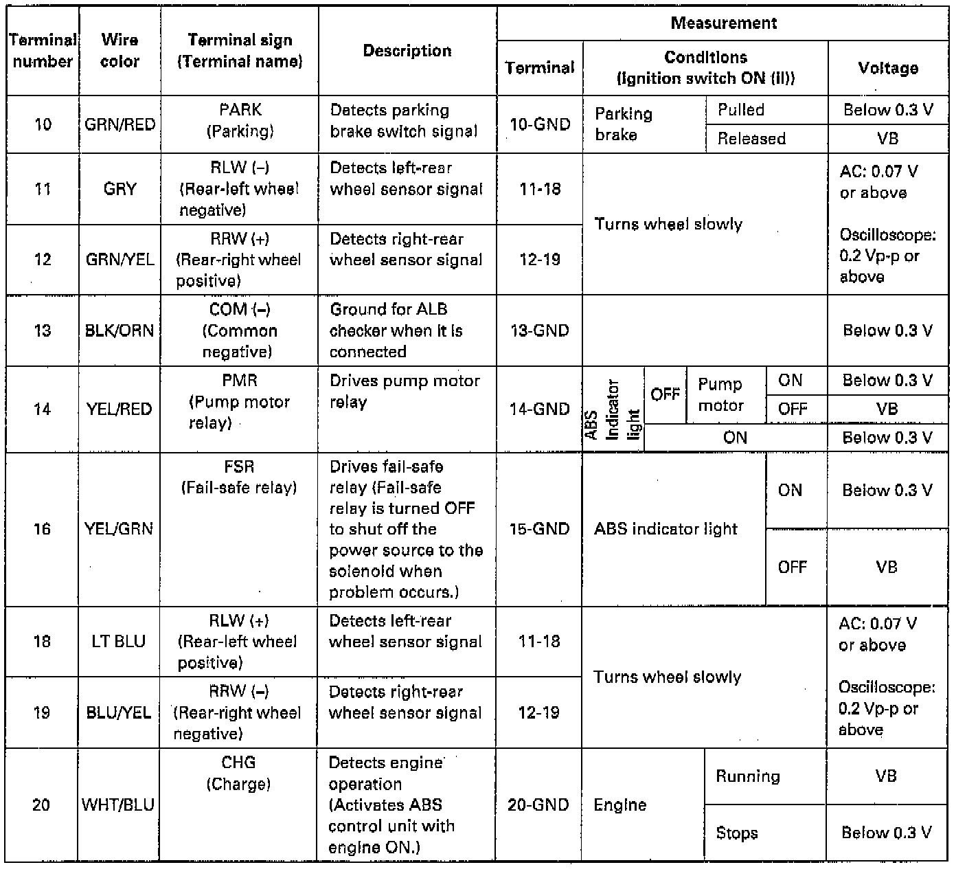 Pinout Values and Diagnostic Parameters