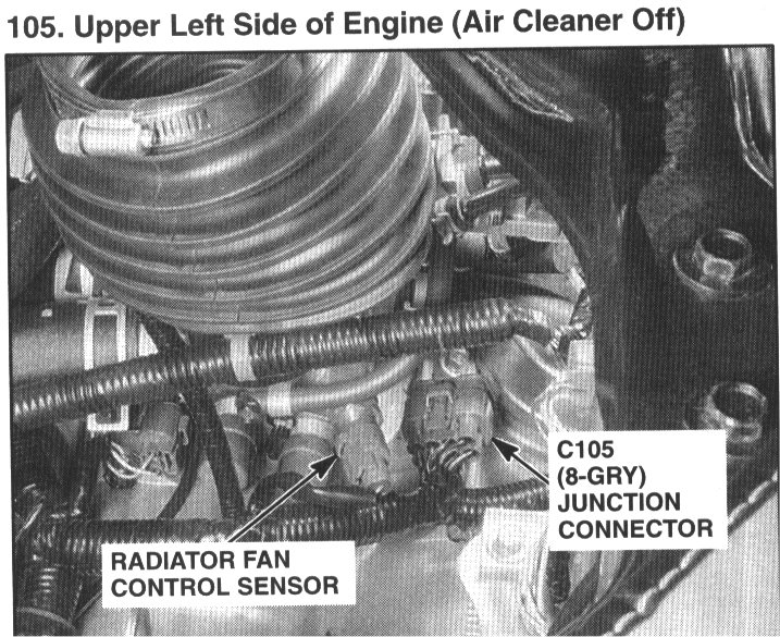 105. Upper Left Side of Engine (Air Cleaner Off):