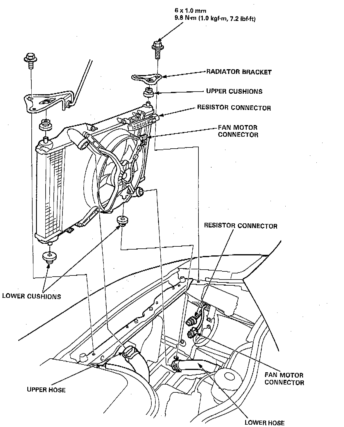 Install the radiator in the reverse order of removal: