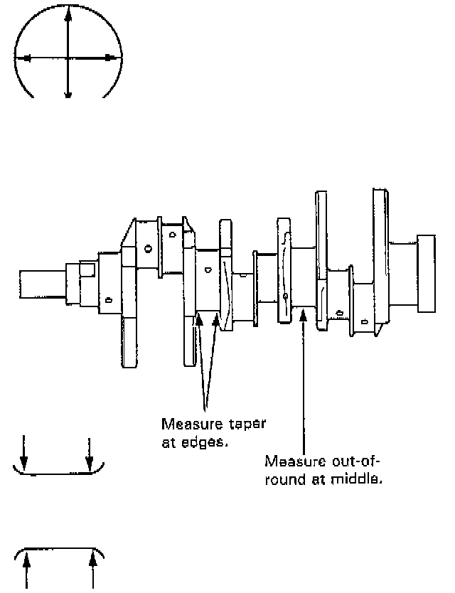 - Measure out-of-round at the middle of each rod and main journal in two places.