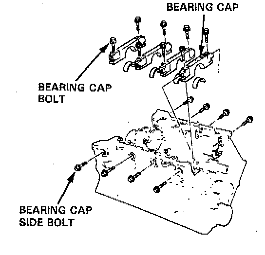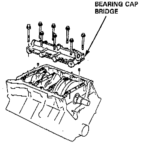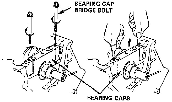 - To help with removal of the caps, install the bearing cap bridge bolts in the bearing cap bolt holes.