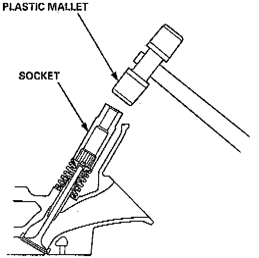 NOTE: Identify valves and valve springs as they are removed so that each item can be reinstalled in its original position.1. Using an appropriate-sized socket and plastic mallet, lightly tap the valve retainer to loosen the valve keepers before installing the valve spring compressor.