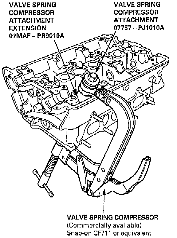 2. Install the spring compressor. Compress the spring and remove valve keeper.